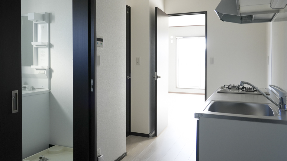 モダンでスタイリッシュな単身者向けのアパート。大容量の収納で、お部屋がスッキリ。白を基調とした明るい室内と、必要十分な『ちょうどいい』居住スペースのお部屋です。